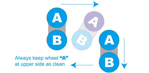 HOBOT-168 has two special-designed cleaning wheels that can freely traverse on the window surface and even on the wall. The easy replaceable micro-fiber cloth is used on both of the cleaning wheels.