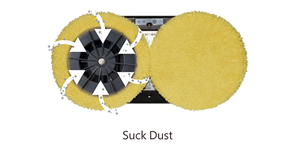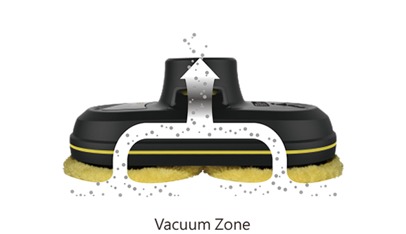 A forceful vacuum sucks out a large proportion of the dust and also helps two cleaning wheels covered with a microfiber cloth extra removing the impurities.