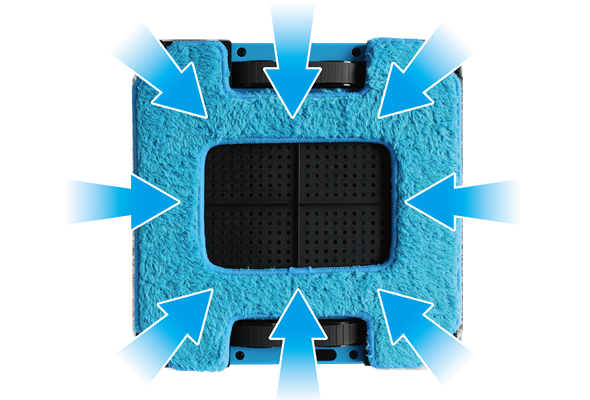 An auto-adjustable pneumatic pad automatically controls the driving force and keeps the force between caterpillar treads and cleaning cloth in proportion, so extremely dirty glass surface does not interrupt HOBOT robots' task of cleaning the whole window and make it slippery.